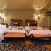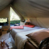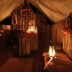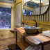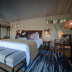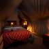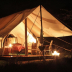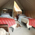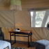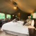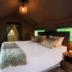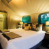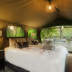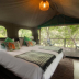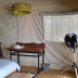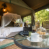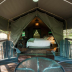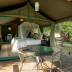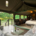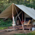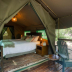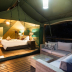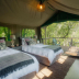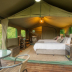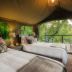 The colonial-style tents come with a private patio and outdoor seating. They also have military campaign-style furniture and rustic bathrooms equipped modern facilities.