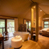 Meals are à la carte, and breakfast and lunch are served under a canopy of thatch, while dinner is usually enjoyed in the traditional outdoor boma around an open fire.
