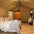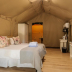 The colonial-style tents come with a private patio and outdoor seating. They also have military campaign-style furniture and rustic bathrooms equipped modern facilities.