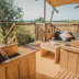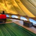 The luxury tent has an outdoor fireplace. A outdoor play equipment is also available at Gaia Twin Bell Tent, while guests can also relax on the sun terrace.