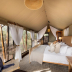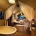 The colonial-style tents come with a private patio and outdoor seating. They also have military campaign-style furniture and rustic bathrooms equipped modern facilities.