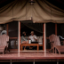 The colonial-style tents come with a private patio and outdoor seating. They also have military campaign-style furniture and rustic bathrooms equipped modern facilities.