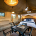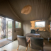 The colonial-style tents come with a private patio and outdoor seating. They also have military campaign-style furniture and rustic bathrooms equipped modern facilities.