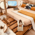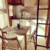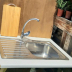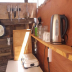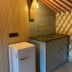 A fridge and stovetop are also provided, as well as a coffee machine.