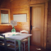 Each wooden chalet-style bungalow has a porch and a living room with a sofa. They are heated and come with a bathroom and a fan. The dining area and kitchenette includes a fridge, microwave and coffee maker.