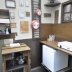 A fridge and stovetop are also provided, as well as a coffee machine.