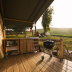 Offering a terrace with garden views, this luxury tent also features a satellite flat-screen TV, a well-equipped kitchen with a fridge, a microwave and a stovetop, as well as a bathroom with a shower.