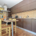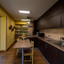 A fridge and stovetop are also provided, as well as a coffee machine.