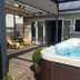 The wellness area at Glamping i Doshult is comprised of a sauna and a hot tub.