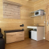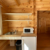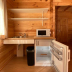 There's also a kitchenette in some of the units equipped with an a microwave, an a fridge, and an a stovetop.