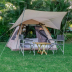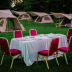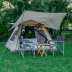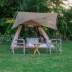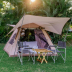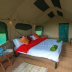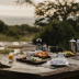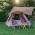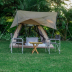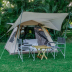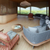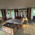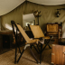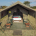 The luxury tent has a picnic area.
