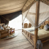 The luxury tent has a terrace.