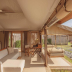 At the luxury tent, units come with a outdoor furniture. There's a private bathroom with bidet in every unit, along with bathrobes, slippers, and a hair dryer.