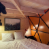 The luxury tent also has a fully equipped kitchen with a fridge, a seating area, and a bathroom with a shower.