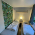 The air-conditioned units have a fully equipped kitchen with a fridge, coffee machine, and a microwave.