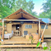 The luxury tent also features a fully equipped kitchen with a fridge and a stovetop, a dining area and a bathroom with a shower.