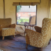 The luxury tent also provides a fully equipped kitchen with a fridge, a seating area, and a bathroom with a shower.