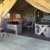 Offering a terrace, this luxury tent also includes a well-equipped kitchen with a fridge, a microwave and a stovetop, as well as a bathroom.