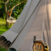 The luxury tent also has a fully equipped kitchen with a fridge, a seating area, and a bathroom with a shower.