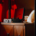 A fridge is also featured, as well as a coffee machine and an electric tea pot.