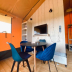 The air-conditioned units have a fully equipped kitchen with a fridge, coffee machine, and a microwave.