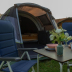 The luxury tent also provides a fully equipped kitchen with a fridge, a seating area, and a bathroom with a shower.