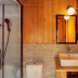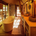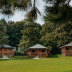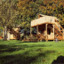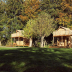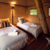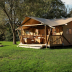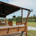 The luxury tent also provides a fully equipped kitchen with a fridge, a seating area, and a bathroom with a shower.