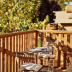 The units have a fully equipped kitchen with dining area, a fridge, coffee machine, and a stovetop.