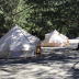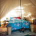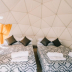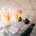 The luxury tent also provides a flat-screen TV, a seating area, washing machine and a bathroom with a shower.