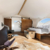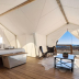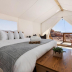 Providing a patio with city views, this luxury tent also offers a kitchen and a bathroom with a shower.
