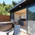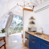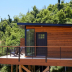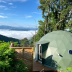 Providing a patio with city views, this luxury tent also offers a kitchen and a bathroom with a shower.