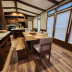 Providing a patio with city views, this luxury tent also offers a kitchen and a bathroom with a shower.