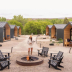 Providing a patio with city views, this luxury tent also offers a kitchen and a bathroom with a shower.