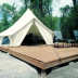 Providing a patio with city views, this luxury tent also offers a kitchen and a bathroom with a shower.