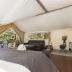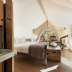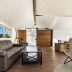 Providing a patio with city views, this luxury tent also offers a kitchen and a bathroom with a shower.