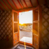Providing a patio with city views, this luxury tent also offers a kitchen and a bathroom with a shower.